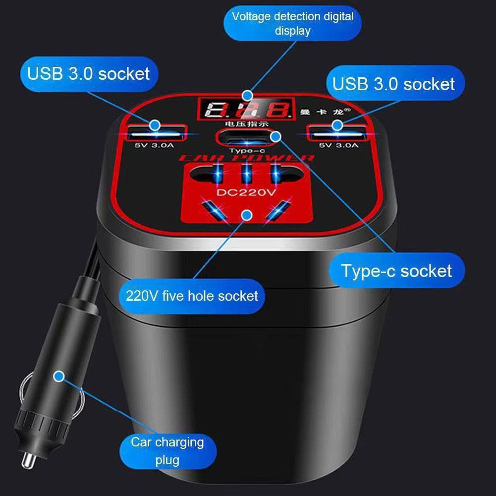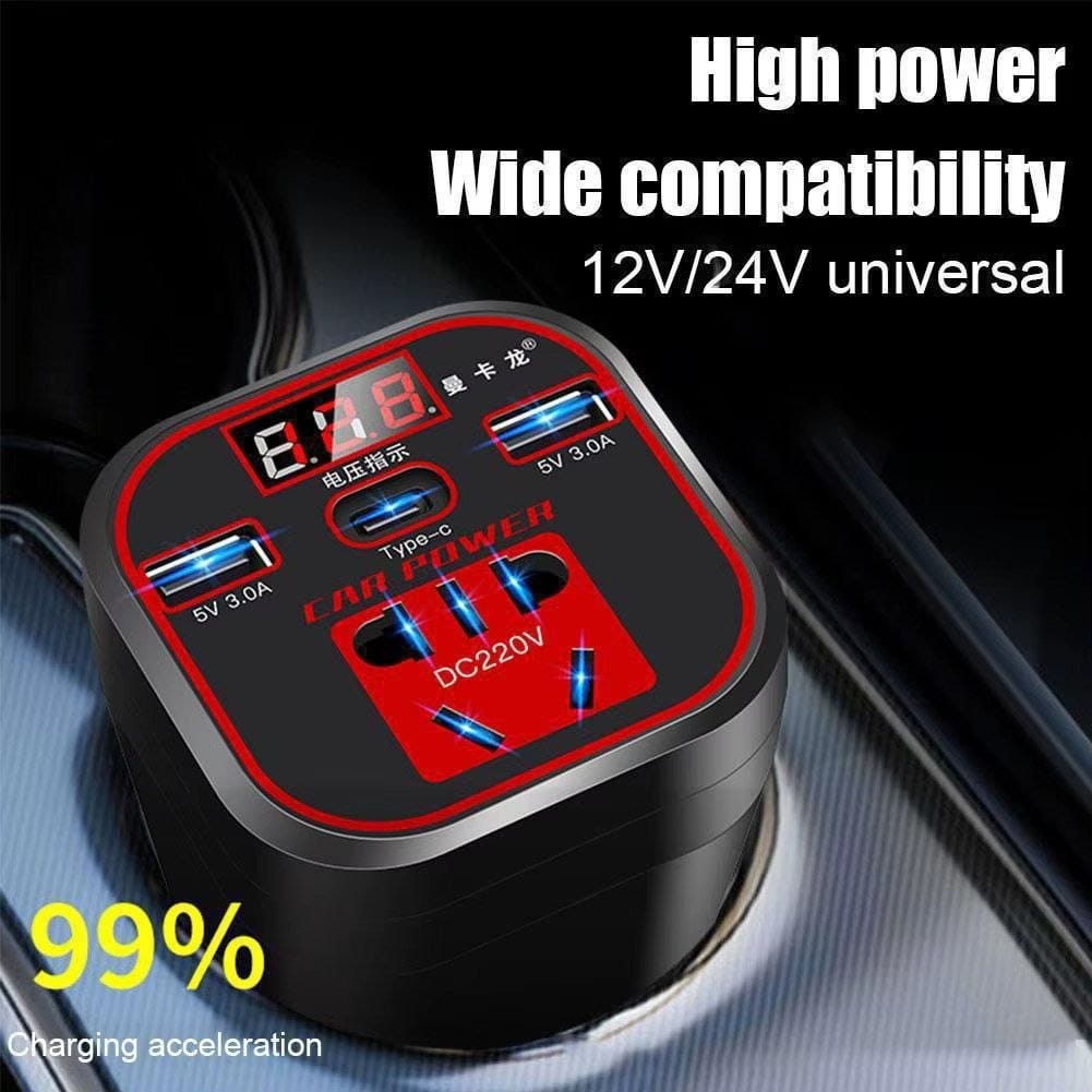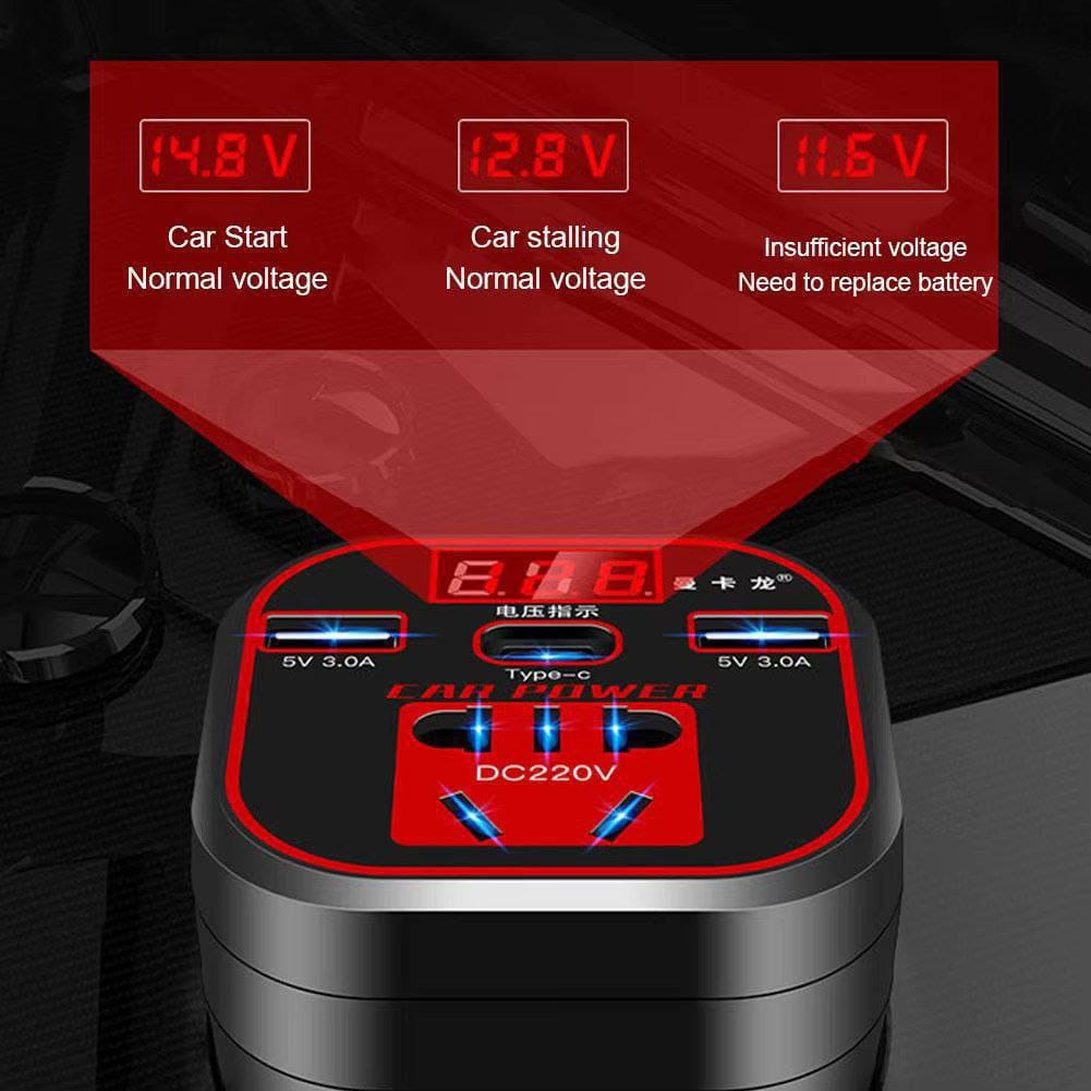 جهاز عملي لتحويل طاقة السيارة إلى كهرباء منزلية بقدرة عالية وتوافق واسع. يعمل على 12V و24V، مما يجعله مناسبًا لمختلف أنواع السيارات. مزود بمخرج كهرباء 220V لشحن وتشغيل الأجهزة، إضافة إلى منافذ USB ومنفذ Type-C للشحن السريع. شاشة رقمية مدمجة تعرض الجهد بشكل مباشر لضمان استخدام آمن ومستقر.