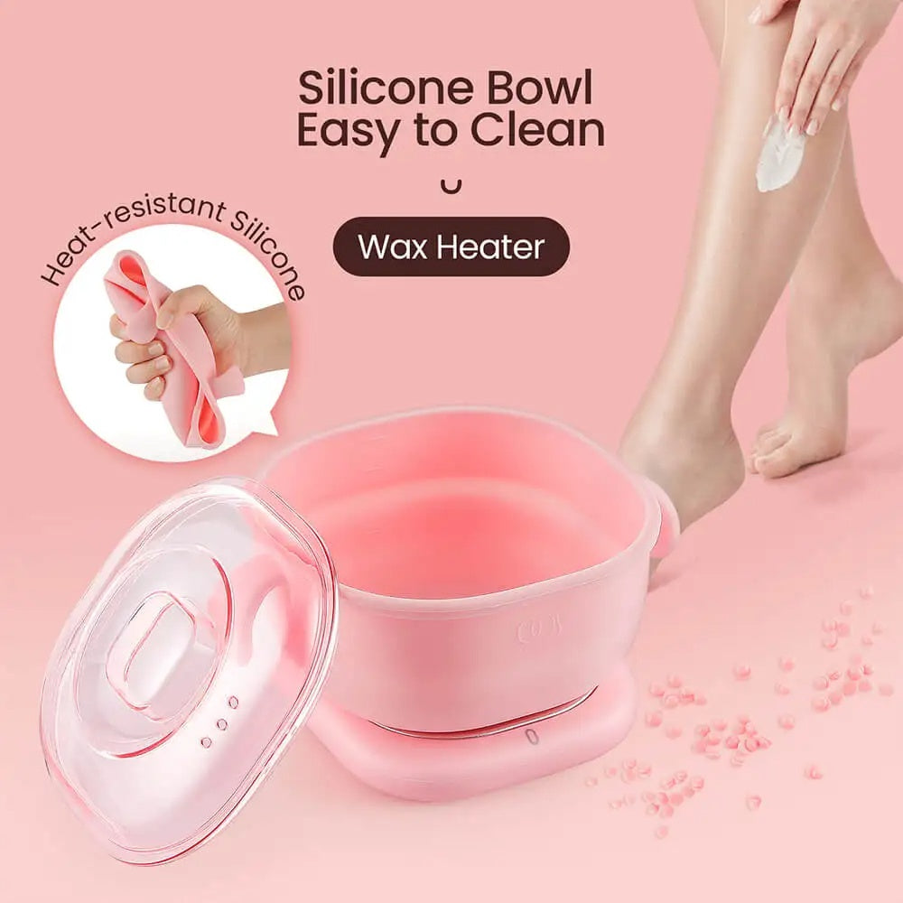 3. تصميم أنسنة: وعاء الشمع السيليكون لإزالة الشعر، يتم استخدام تصميم مسند الذراع العكسي لمنع الحروق، ويستخدم الغطاء غطاء شفاف مع فتحات تبديد الحرارة لتبديد الحرارة بشكل أفضل ومراقبة ذوبان حبيبات الشمع بالداخل. حالة.