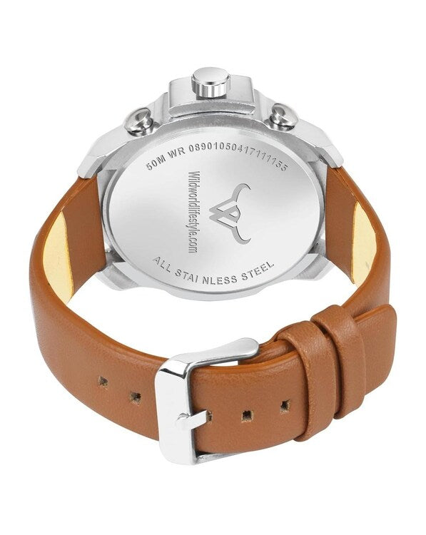 تصميمها العصري وسوارها الجلدي يمنحان مظهرًا أنيقًا يناسب اللباس اليومي والرسمي.⭐ مميزات الساعة